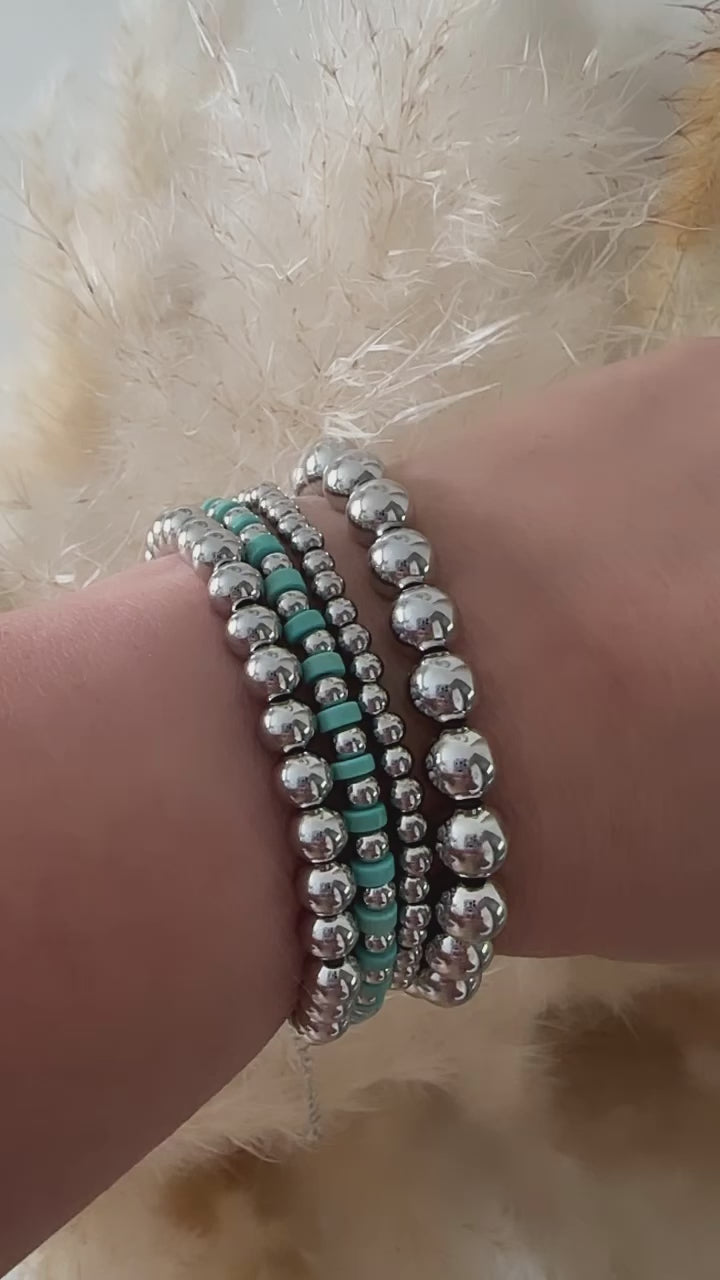 Enhance your everyday look with the Aqua set. This elegant set includes a 15-inch necklace and a 6 1/2-inch bracelet, both with a 2-inch extender. Crafted with silver plated beads and turquoise disc beads, this set is perfect for any occasion. Upgrade your style with this stunning addition.
