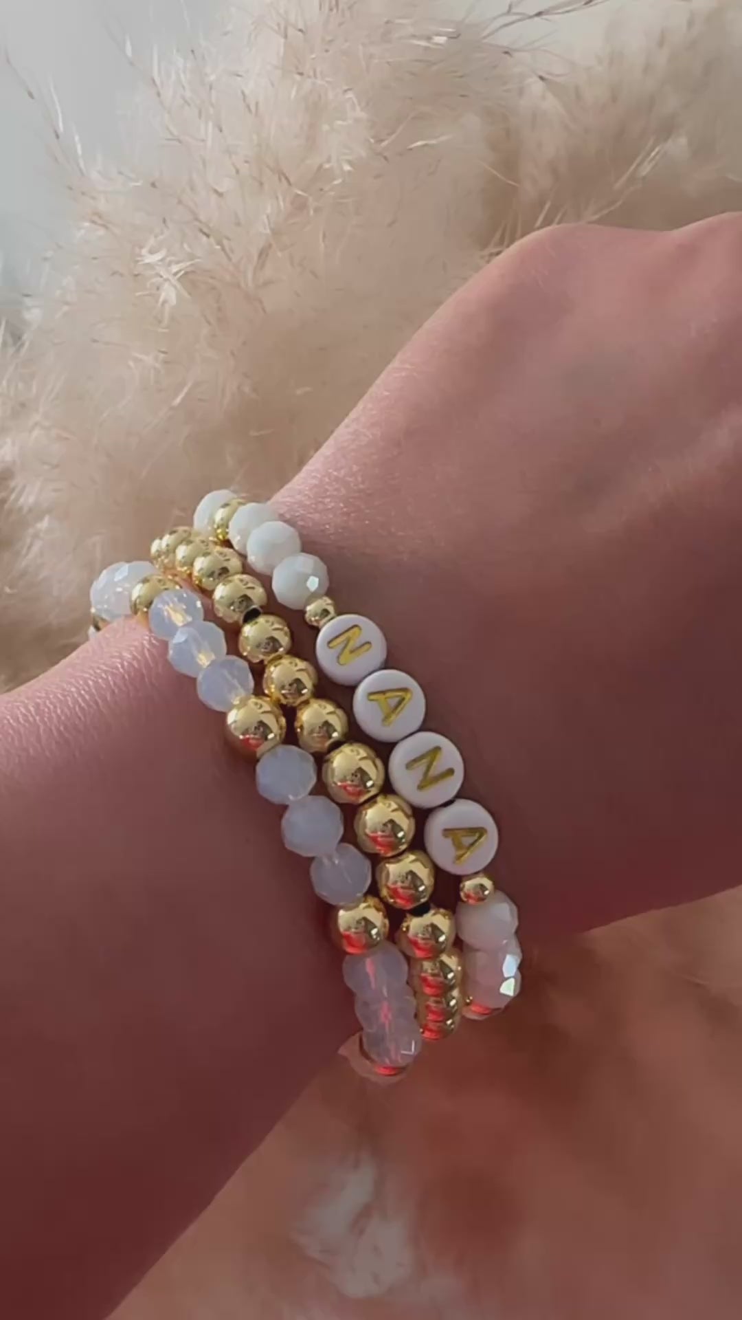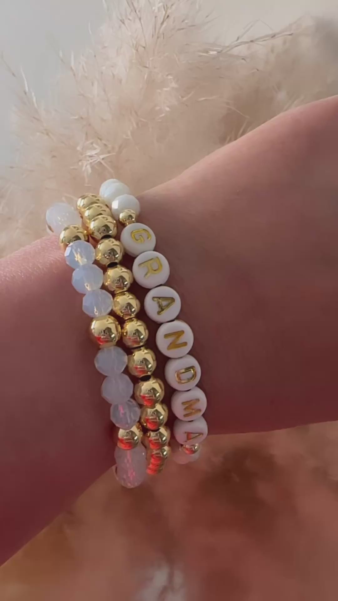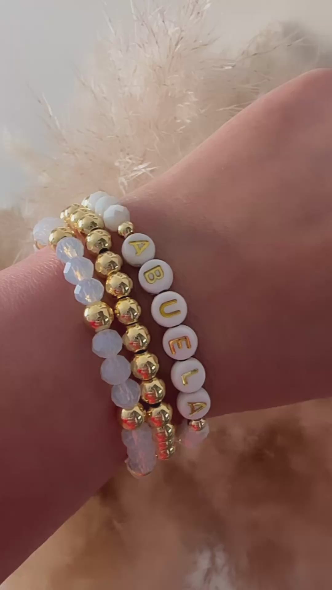 This set of three bracelet stacks is the perfect gift for grandmothers, with options to choose from the Spanish words Abuela or Nana. Made with gold plated materials, beads, and faceted crystals, this bracelet stack is both stylish and meaningful. Show your love and appreciation with this beautiful accessory.