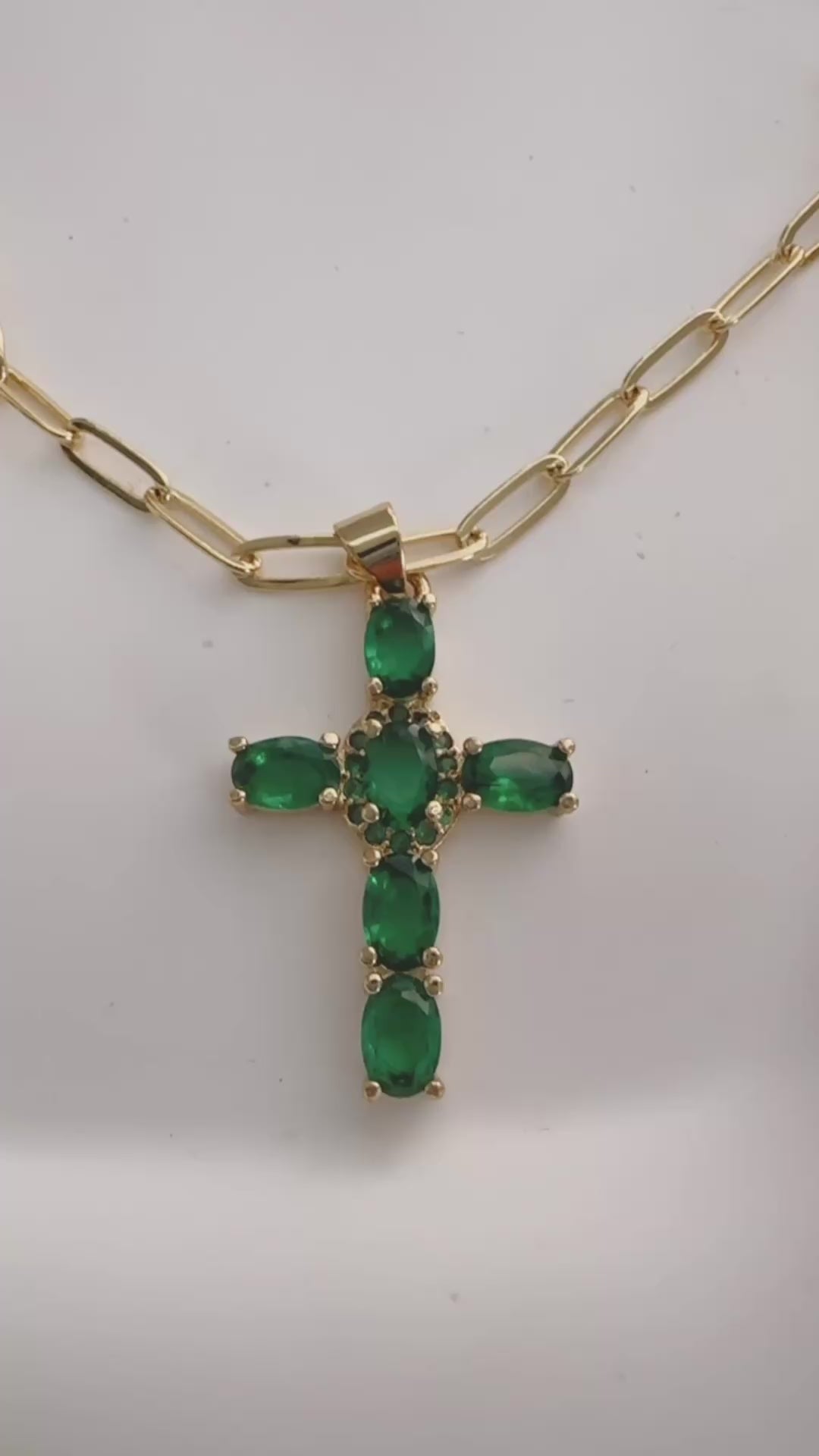 Turn heads and spark a little envy. 💚 Introducing Green with Envy—the perfect pop of green to elevate any outfit. Ready ? A stunning 19" paper clip chain with gold plating and green charms. The focal point is a striking emerald green cross with four dainty charms, perfect for the holiday season. Turn heads and evoke jealousy with this bold and unique accessory.