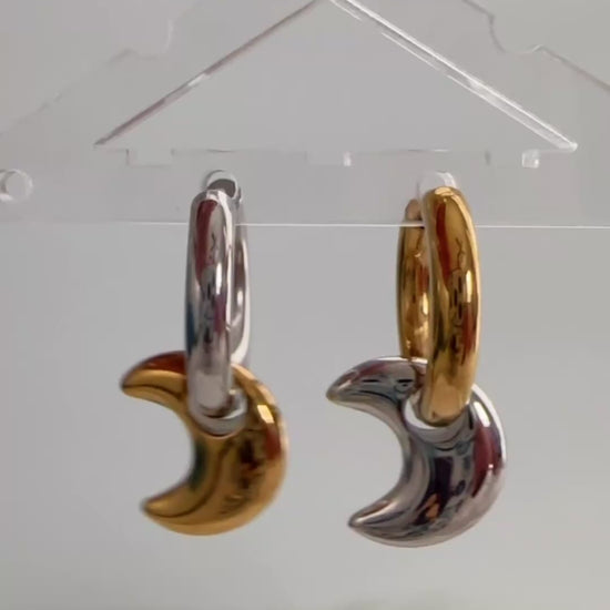 Made of durable Stainless Steel, our Puffy Moon Huggie Hoops feature a trendy puffy moon charm that can be removed for a classic huggy hoop style. Versatile and stylish, pair with our Stainless Steel star Huggies for a super-trendy look. You can interchange the charm for a two toned look
